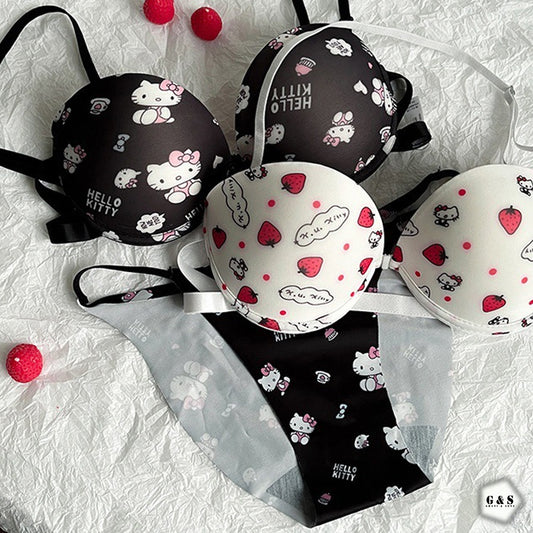 Black Stones Design Heart Printed Pushup Bra With T-Panty Set