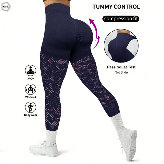 High Waist Seamless Navy Blue Mesh-Hole Design Butt Lifter Gym/Yoga Legging