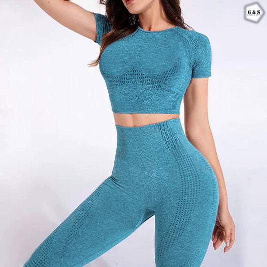 Pack Of 2 Half Sleeves Crop Top Seamless With Butt Lifter Gym/Yoga Sets
