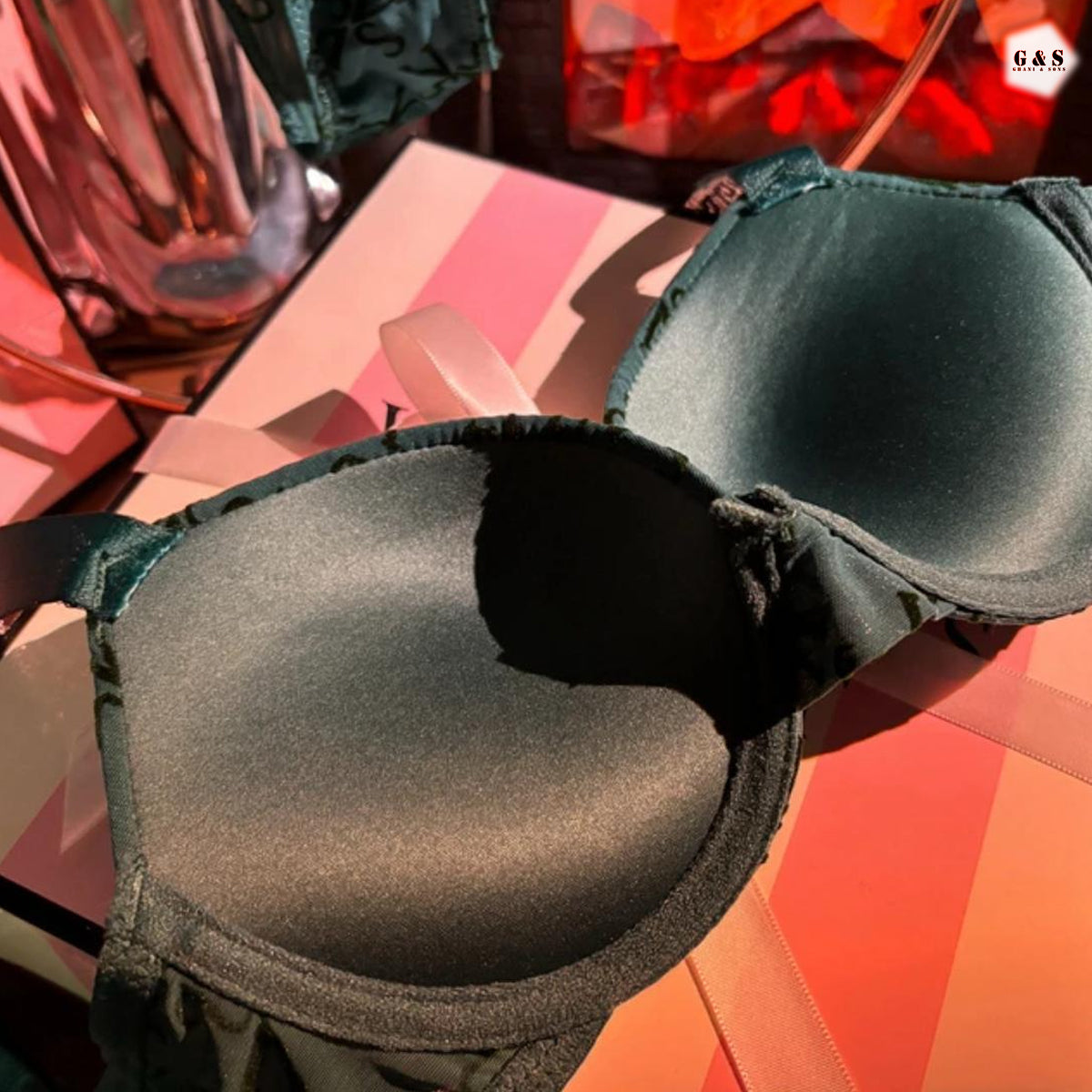Ladies Imported Stones Design Deep Green Color Pushup Bra With T-Panty Set